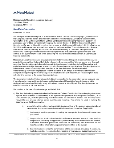 reporting. The description includes only the control objectives and related controls of MassMutual and