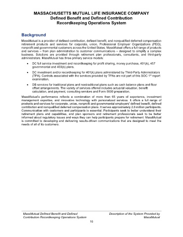 MassMutual Defined Benefit and Defined Description of the System Provided by