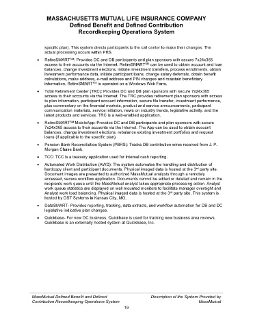 MassMutual Defined Benefit and Defined Description of the System Provided by