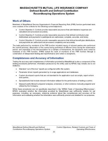 Testing the accuracy and completeness of information provided by MassMutual is also a component of the