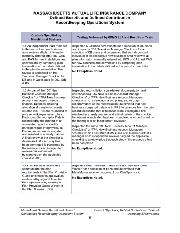 MassMutual Business Testing Performed by KPMG LLP and Results of Tests
