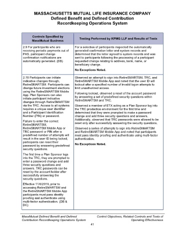 MassMutual Business Testing Performed by KPMG LLP and Results of Tests