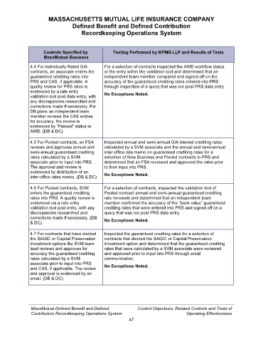MassMutual Defined Benefit and Defined Control Objectives, Related Controls and Tests of