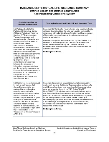 MassMutual Business Testing Performed by KPMG LLP and Results of Tests