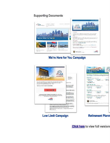 Supporting Documents News & Updates We’re Here for You Campaign Low Limit Campaign Retirement Planning Webinar Campaign Newly Eligible Campaign Click here to view full versions of the supporting documents.