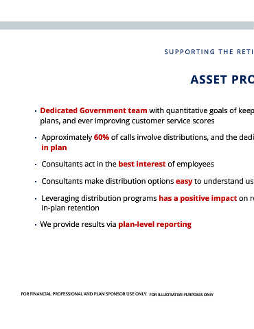 • Dedicated Government team with quantitative goals of keeping money in plans, rolling money into