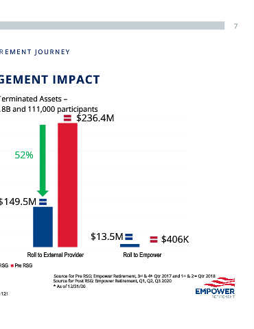 Source for Post RSG: Empower Retirement, Q1, Q2, Q3 2020