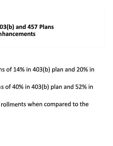 • November 2020 enrollment highs of 40% in 403(b) plan and 52% in