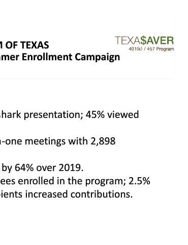 • 2.3% of targeted eligible employees enrolled in the program; 2.5%